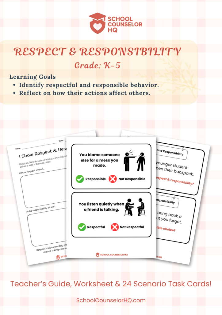 Respect & Responsibility – Scenario Task Cards (SEL Activities)By School Counselor HQ Help students understand what respect and responsibility look like in everyday life with these engaging scenario-based task cards! Designed for grades 3–6, Respect & Responsibility Task Cards give students real-world situations to think through, discuss, and role-play — helping them practice positive decision-making and social skills. […]